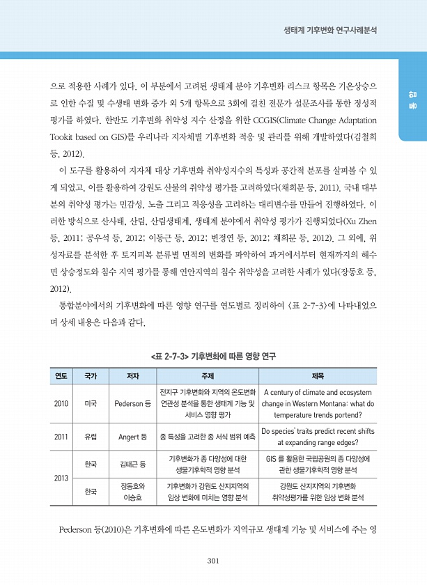 제목 : 생태계 기후변화 영향·취약성·리스크평가 : 연구사례분석