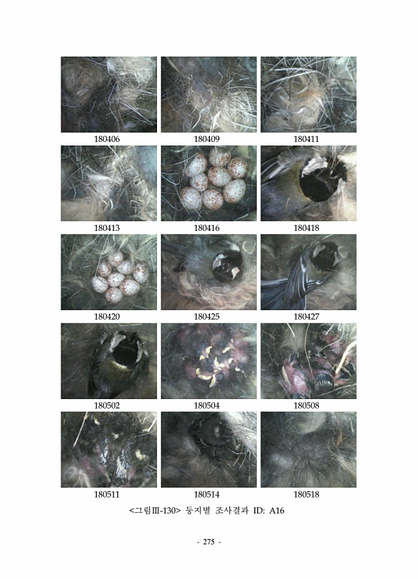 275 180406 180409 180411 180413 180416 180418 180420 180425 180427 180502 180504 180508 180511 180514 180518 그림Ⅲ-130 둥지별 조사결과 IDA16