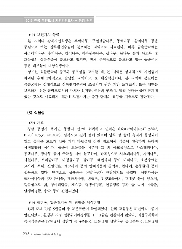 제목 : (2015) 전국 무인도서 자연환경조사 : 통영 권역