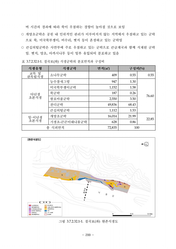 iii. 식물상 www.nie.re.kr ?297 8구간 회룡포습지 ? 산지와 경작지가 인접하고 있는 구간으로 부분적으로 하천정비가 이루어 진 곳이다. 둔치에는 모래톱이 잘 발달되어 있으며, 달뿌리풀, 버드나무, 왕버들 등이 군락을 이 루고 있다. 수생식물의 분포를 찾아보기 어려운 곳이지만 일부 지역에서 하천정비로 인한 모래 톱 형성이 되지 않는 곳에 호안부위를 중심으로 큰고랭이, 송이고랭이, 고마리, 개피 등의 수생 식물의 분포가 일부 확인되었다. 9구간 삼강습지 ? 대부분 경작지가 인접하고 있으며, 부분적으로 산지가 인접한 구간이다. 하 천정비가 이루어진 곳이 많아 개망초, 망초, 돼지풀 등의 1년생 귀화식물의 분포가 많았으며, 식물의 종구성이 다른 구간에 비해 빈약한 곳이다. 낙동강과 합수되는 곳으로 ...