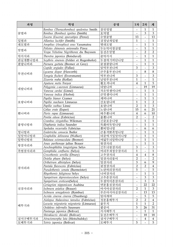 279 학 명 국 명 남 산 지리산 한라산 소 나 무 림 신 갈 나 무 림 아카시나무림 구 상 나 무 림 소 나 무 림 신 갈 나 무 림 구 상 나 무 림 소 나 무 림 신 갈 나 무 림 Mythimna separata 멸강나방 3 1 Mythimna subplacida 점날개검은밤나방 1 Mythimna turca 쌍띠밤나방 1 1 Naranga aenescens 벼애나방 1 Niphonyx segregata 엉겅퀴밤나방 1 1 Orthogonia sera 모진밤나방 1 2 2 1 Orthogonia tapaishana 금강산모진밤나방 2 Ozarba brunnea 줄무늬꼬마짤름나방 1 Peridroma saucia 뒷흰날개밤나방 1 Perigrapha hoenei 선녀밤나방 2 Prodeltote pyg...