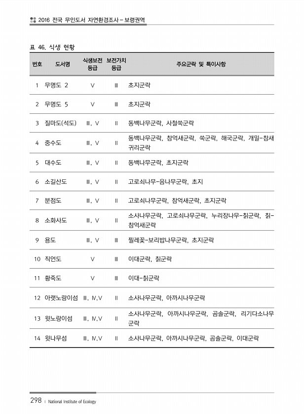 제목 : (2016) 전국 무인도서 자연환경조사 : 보령권역