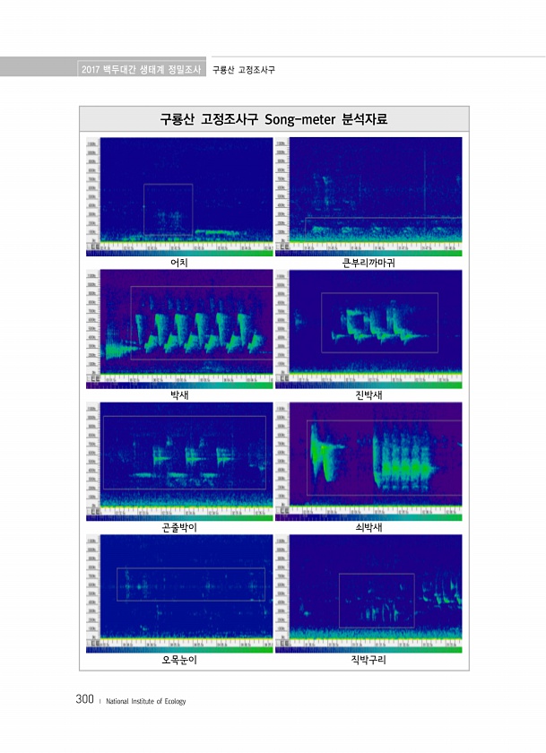 2017 백두대간 생태계 정밀조사 구룡산 고정조사구 300 ? National Institute of Ecology 구룡산 고정조사구 Song-meter 분석자료 어치 큰부리까마귀 박새 진박새 곤줄박이 쇠박새 오목눈이직박구리