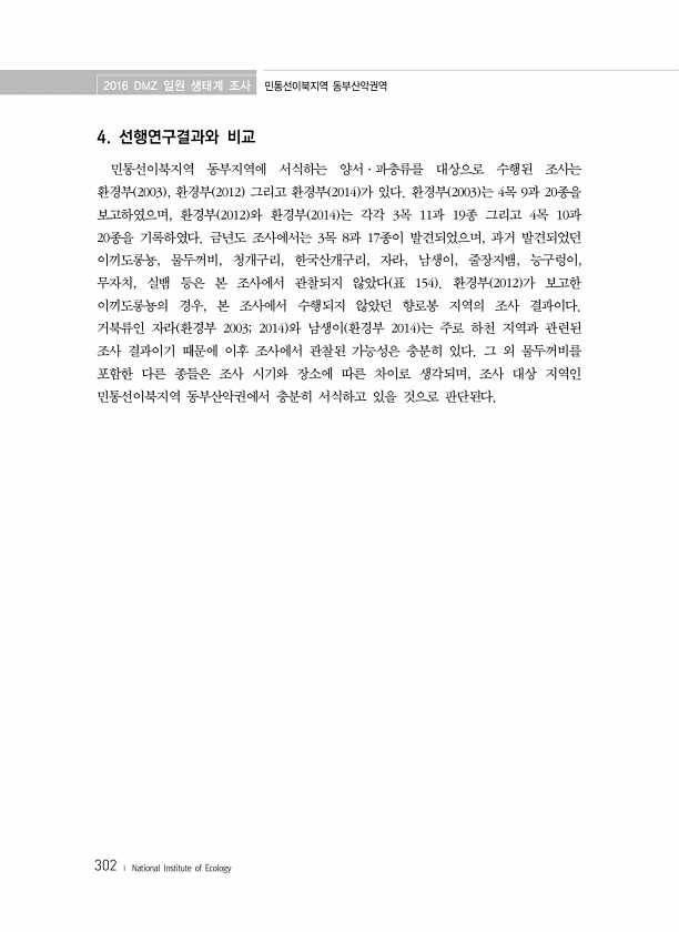 제목 : (2016) DMZ 일원 생태계 조사 : 민통선이북지역 동북산악권역