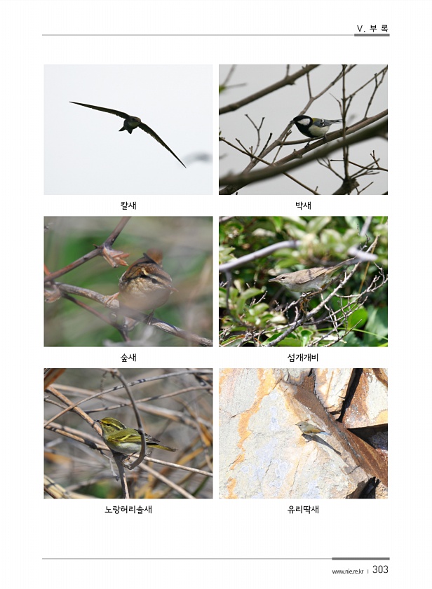 Ⅴ. 부 록 www.nie.re.kr ? 303 칼새 박새 숲새 섬개개비 노랑허리솔새유리딱새