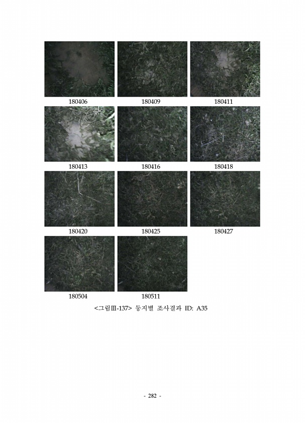 282 180406 180409 180411 180413 180416 180418 180420 180425 180427 180504 180511 그림Ⅲ-137 둥지별 조사결과 IDA35