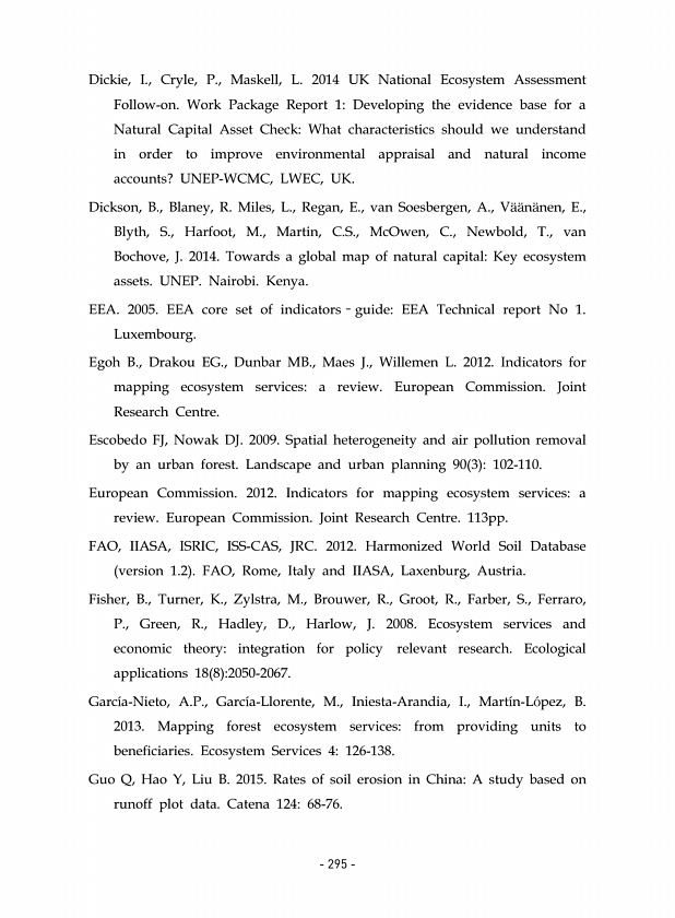 Dickie, I., Cryle, P., Maskell, L. 2014 UK National Ecosystem Assessment Follow-on. Work Package Report 1Developing the evidence base for a Natural Capital Asset CheckWhat characteristics should we understand in order to improve environmental appraisal and natural income accounts? UNEP-WCMC, LWEC, UK. Dickson, B., Blaney, R. Miles, L., Regan, E., van Soesbergen, A., V??n?nen, E., Blyth, S., Harfoo...