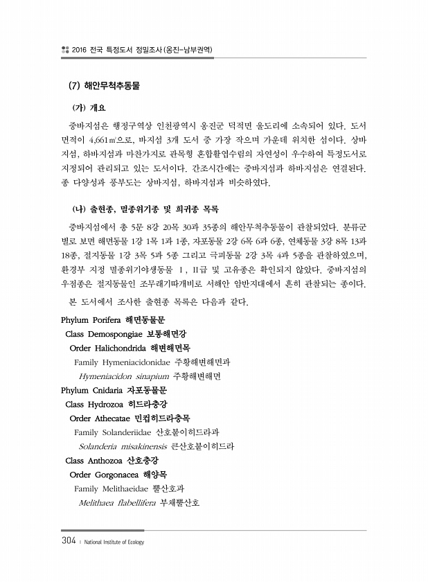제목 : (2016) 특정도서 정밀조사 : 옹진-남부권역