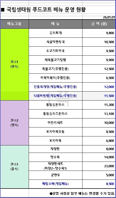 o 식당 운영업체(풀무원푸드앤컬쳐)와 메뉴, 가격 등 협의 후 이용 가능